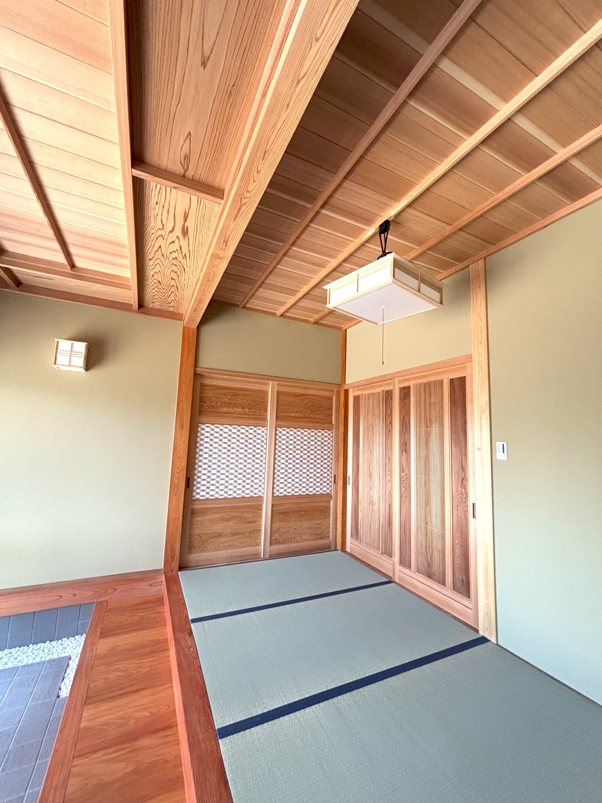 最近は見られない、木材をふんだんに使用した風情のある家が完成しました。